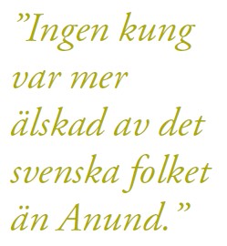 ”[Anund] var överlägsen alla sina föregångare i vishet och fromhet: ingen kung var mer älskad av det svenska folket än Anund”.6